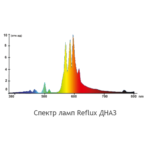 3. ЭПРА (электронный ПРА) - Vossloh Schwabe (Германия). Издаёт лёгкое гудение, но увеличивает ресурс лампы на 30%.Фитолампампы Reflux ДНАЗ (дуговые натриевые зеркальные) разработаны непосредственно для досветки растений и широко применяются для выращивания различных плодо-овощных культур и зелени в промышленных масштабах, а так же для содежания и выращивания комнатных растений в зимний период при недостатке естественного солнечного света. Лампа Рефлакс ДНАЗ оборудована зеркальным элементом, что увеличивает КПД до 95%.