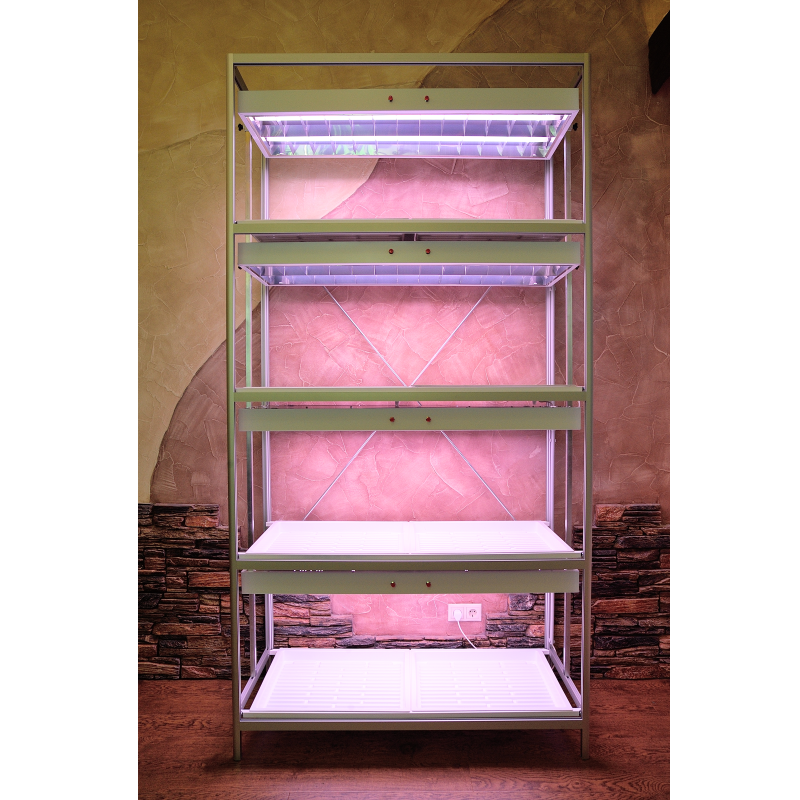 Конструкция светильника состоит из блина, трёх стержней, которые накручиваются на блин и держателя лампы, который крепится к верхней части стержня.Данный светильник для растений комлпектуется газоразрядными натриевыми лампами для растений ДНАЗ, производства компании Reflux (Россия).