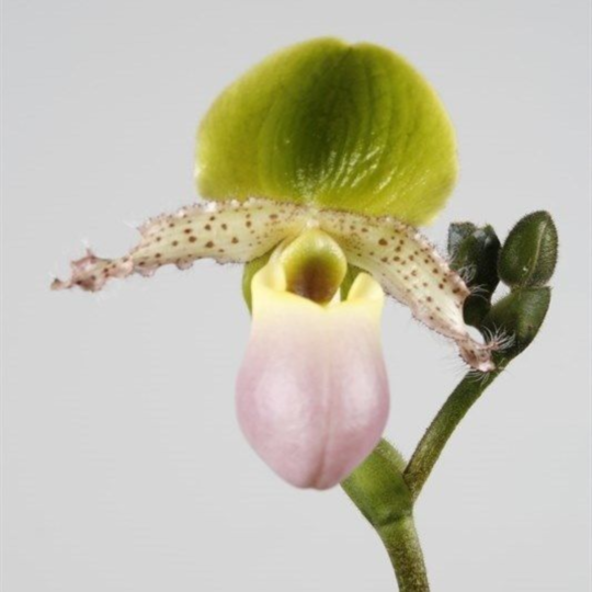 Paphiopedilum Pinocchio - гибрид, родителями которого являются Paphiopedilum glaucophyllum и Paphiopedilum primulinum. Пиноккио относится к так называемому "револьверному" типу цветения, когда на одном цветоносе постепенно распускается от 1 до 3 цветов. Лучше всего данный вид себя чувствует на светлых северных окнах, восточной и западной ориентации.