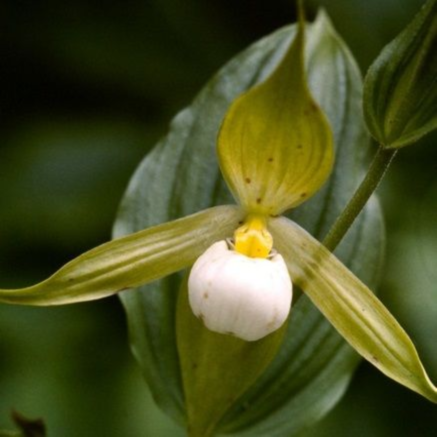 Циприпедиум имеет второе название - "Венерин башмачок". Необыкновенно красивый вид - Cypripedium cordigerum, желто-белого цвета с крупными цветками, с широкими чашелистниками. Цветок выглядит очень воздушным, легким, нежным. Листья овальные и острые, светло-зеленые. Циприпедиумы приходят в контейнерах с неповрежденной корневой системой и в виде корневищ, при правильной посадке легко адаптируются в саду. Циприпедиум хорошо зимует в российских условиях, выдерживая морозы до - 30 С, без укрытия при снежном покрове в 20-30см. Растение редкое.