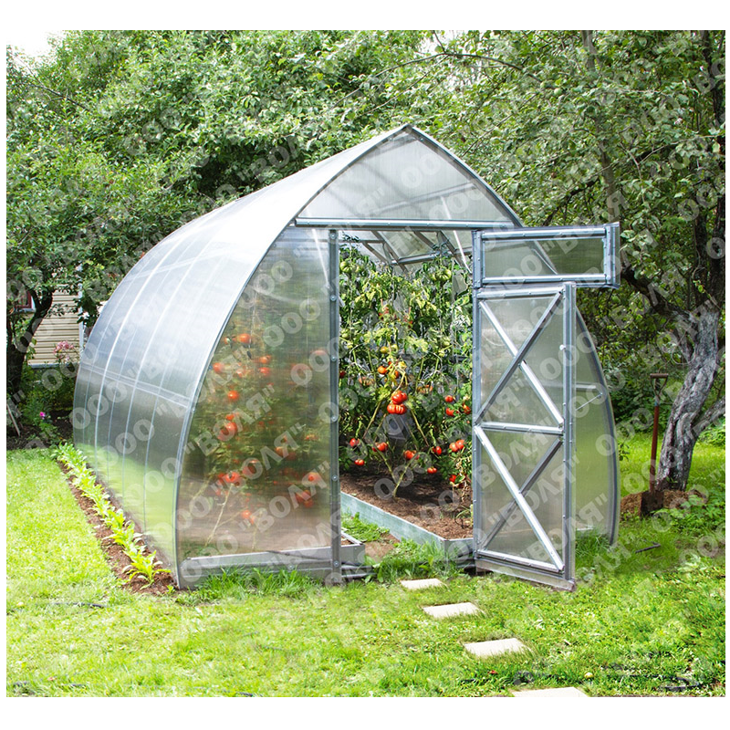 Теплица "Дачная-Стрелка" идеально подходит для снежных зим. Каждая дуга усилена и выдерживает до 700 кг снеговой нагрузки. Предельная снеговая нагрузка на теплицу – 450 кг/м2. Каркас для теплицы изготовлен из прочного оцинкованного профиля 60х20 мм. Его высота прекрасно подходит для выращивания высокорослых культур, а ширина оптимальна для двух грядок. Готовые садовые теплицы из поликарбоната серии "Дачная-Стрелка" можно устанавливать без фундамента – нужно всего лишь закопать специальные Т-образные окончания каркаса в грунт. По желанию покупателя в комплект входит покрытие.